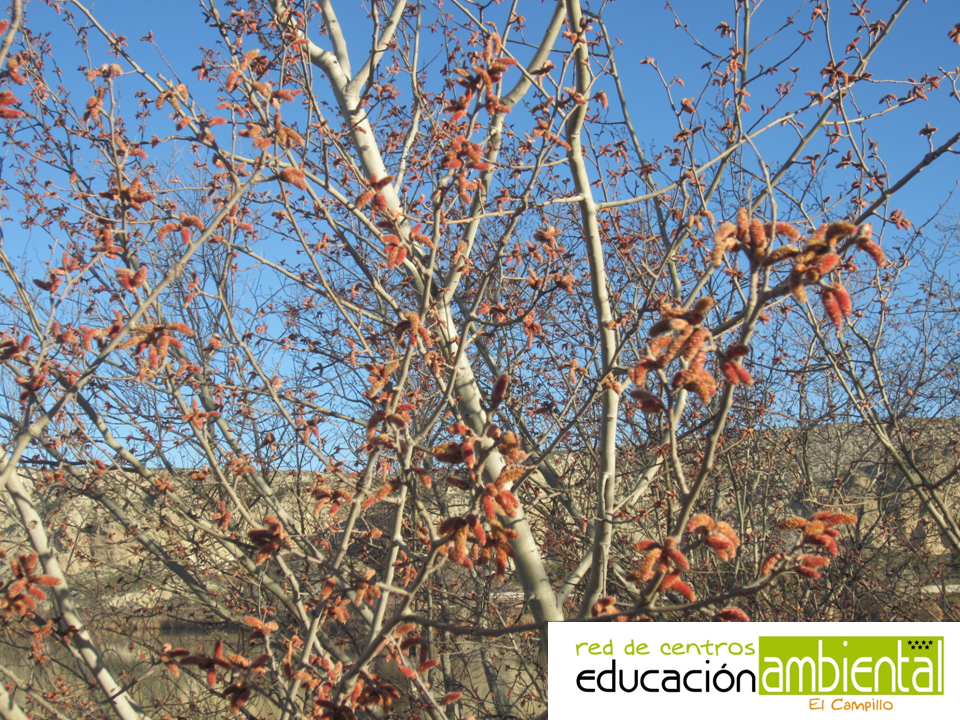 Las especies arbóreas más representativas del bosque de ribera en el tramo del río Jarama que abraza la laguna de El Campillo (el álamo blanco, el álamo negro, el fresno y el olmo) comenzaron a salir de su «letargo» invernal en febrero. Fue en este mes cuando empezaron a asomar las yemas reproductoras en sus ramas desnudas (al ser especies de hoja caduca) y, a continuación, las flores. Lo más curioso y llamativo de todo este proceso es que aparecen antes las flores que a las hojas.