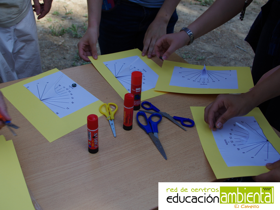 Es este taller, cada uno de los alumnos construyó su propio reloj solar y aprendieron a utilizarlo gracias a las explicaciones de los monitores. Este año, además, ante la gran cantidad de participantes, cada grupo realizó la actividad en dos turnos de manera que, mientras unos construían su propio reloj solar, los otros participaban en juegos dinamizados por otro de los monitores y luego se cambiaban.