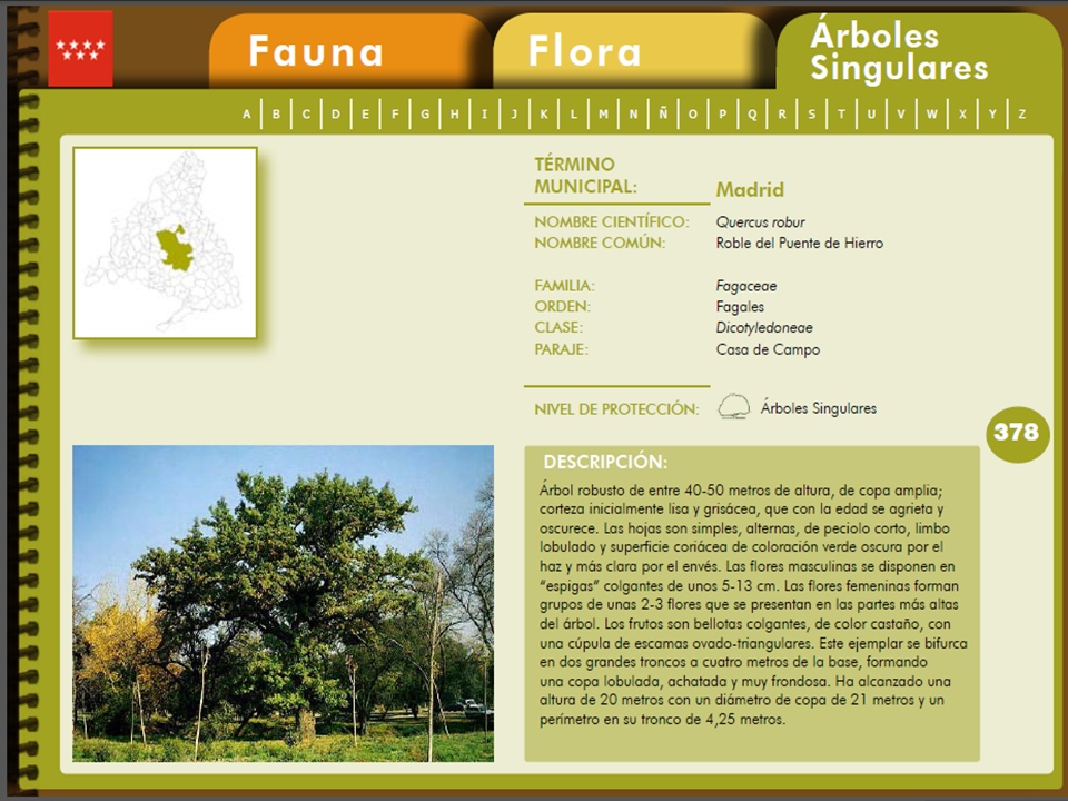 - Decreto 18/1992 por el que se aprueba el catálogo regional de especies amenazadas y se crea la categoría de árboles singulares: www.madrid.org/wleg