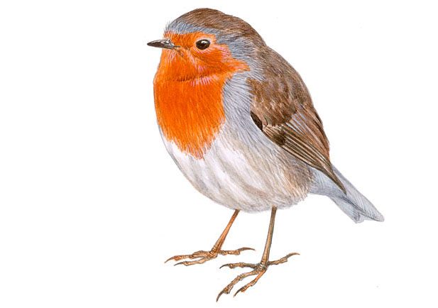 Dibujo de un petirrojo donde se puede apreciar muy bien su patrón de coloración. Fuente: http://www.seo.org