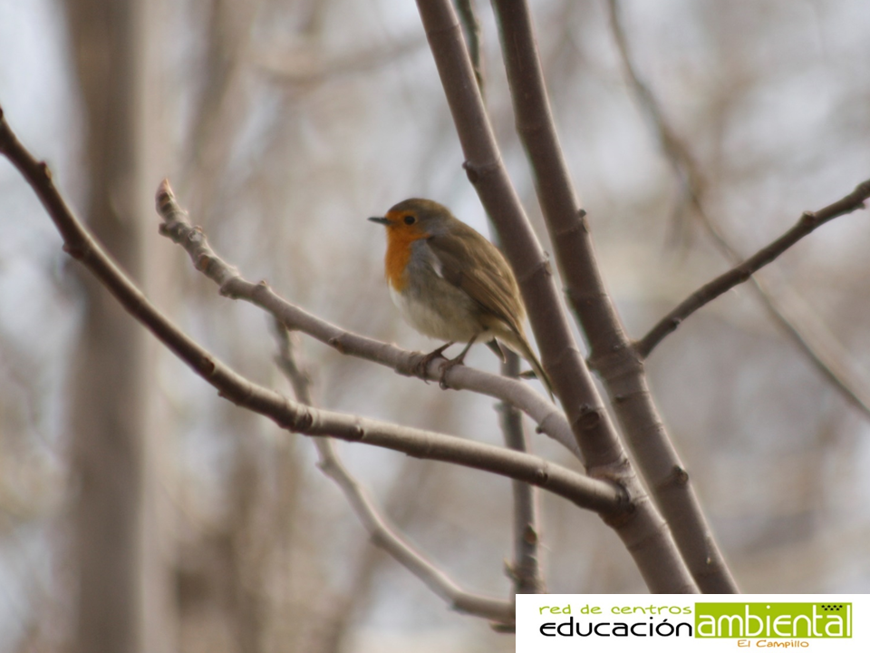 Una de las especies ornitológicas más fáciles de ver durante el invierno en el camino de nuestra laguna es el petirrojo (Erithacus rubecula). Este pájaro, del tamaño de un gorrión, es una especie residente del Parque Regional del Sureste pero su población aumenta durante el invierno con individuos procedentes del norte de Europa. Este incremento poblacional, sumado a la desnudez de los árboles y a su comportamiento de búsqueda de alimento en el suelo junto al camino, hacen del petirrojo una de las especies observadas más comunes durante el invierno.