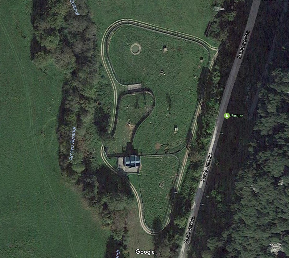 Recintos oseros junto a la Senda del Oso. Fuente: Google Maps