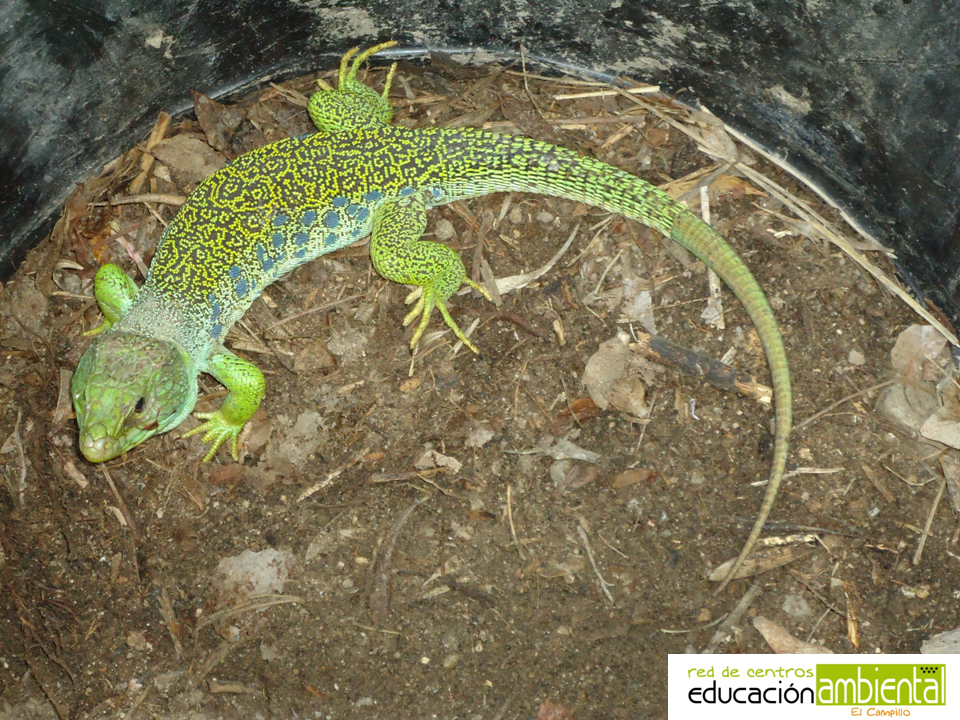Una de las especies de reptil más popular y conocida que podemos encontrar entre el bosque de ribera y bosque mediterráneo, márgenes de cultivos, o en los cortados yesíferos del Parque Regional del Sureste es el mayor lagarto de Europa. Un lagarto que puede alcanzar los 70 cm desde la cabeza hasta la punta de la cola y cuyo nombre científico es Lacerta lepida, aunque recientemente se le conoce también como Timon lepidus.