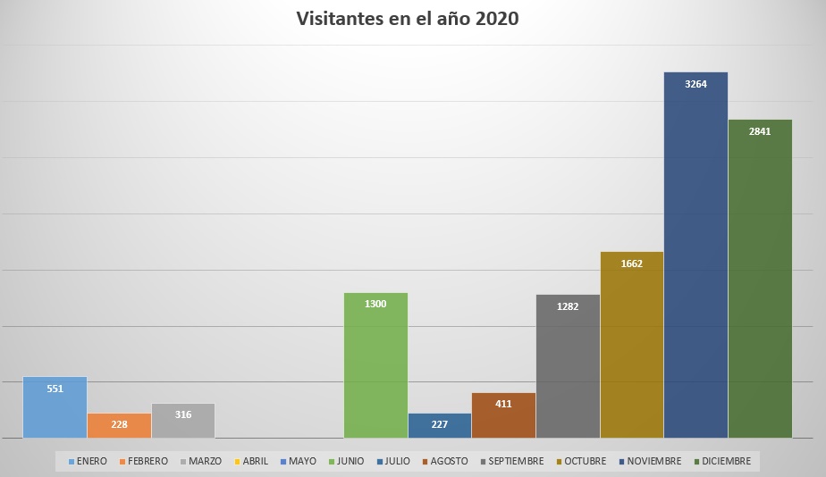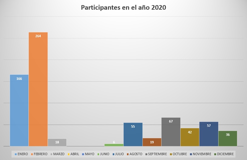 A pesar de todo, tenemos la suerte de dar las gracias a las 12082 personas que visitaron nuestras instalaciones a lo largo de 2020 y a las 793 que participaron en nuestras actividades. Aunque hemos tenido muchos más visitantes que en años anteriores, hemos tenido muchos menos participantes en las actividades. Ha sido debido a los aforos establecidos para las actividades que tras el confinamiento han sido de 6 o 10 personas. Por ese motivo las listas de espera para las actividades han incrementando hasta sumar 456 personas.