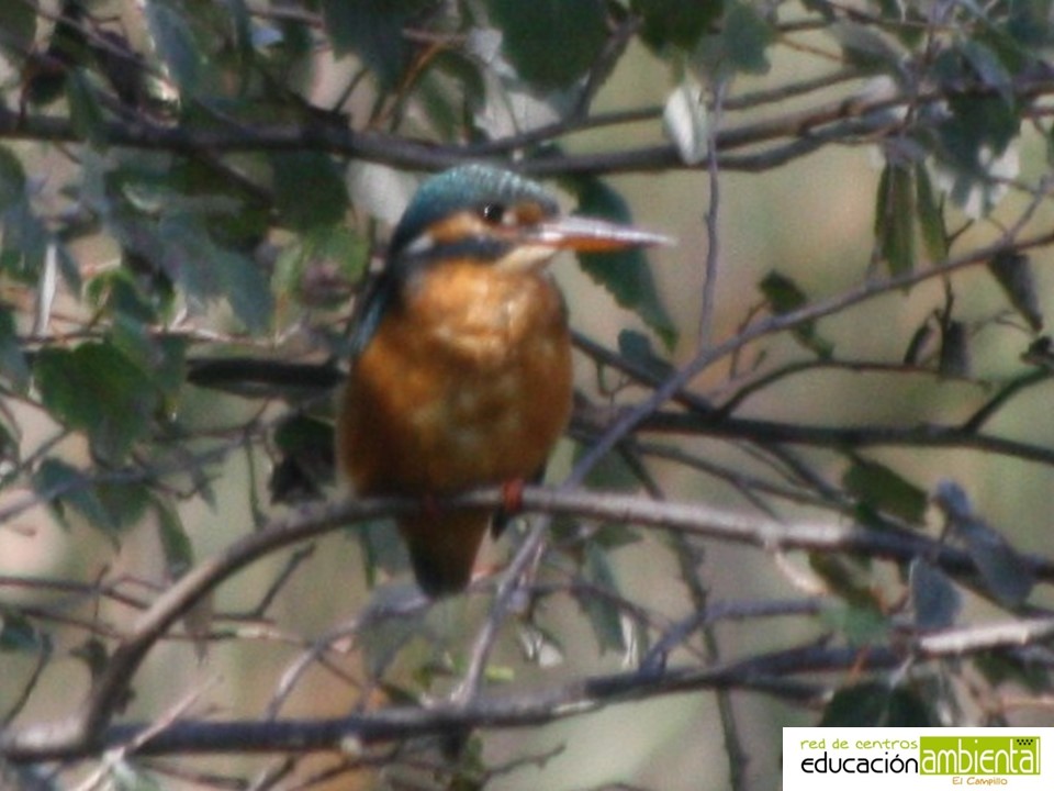 El martín pescador (Alcedo atthis) mide tan solo 17 centímetros, en proporción con su cuerpo compacto tiene la cabeza grande, el pico es negro y largo y las alas anchas, mientras que las patas y la cola son cortas. Su plumaje es rojo anaranjado por debajo (región ventral) y de un azul brillante y metalizado por la parte dorsal, a veces torna a tonos verdosos. También tiene una mancha blanca en la garganta y en los laterales del cuello.