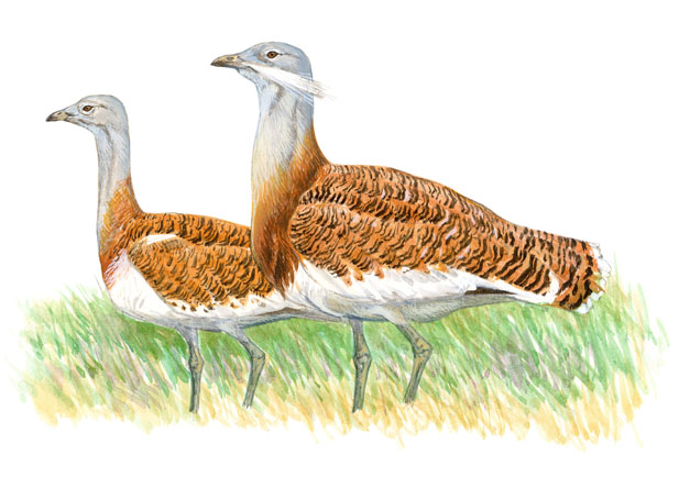 Tal y como ya os contamos en una de las entradas en nuestro blog, en el Parque Regional del Sureste podemos, con un poquito de suerte, observar al ave voladora más pesada: la avutarda (Otis tarda). Un ave inconfundible, tanto por su gran tamaño (el macho, más grande que la hembra, puede llegar a pesar 20 kg), como por su plumaje con tonos pardos, rojizos y dorados que tanto el macho como la hembra poseen (siendo el plumaje de las hembras algo más apagado).