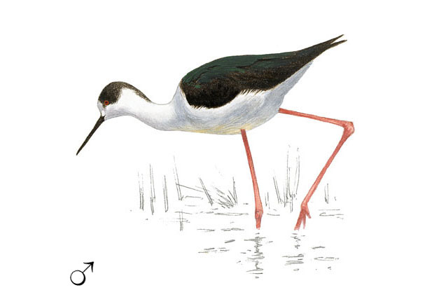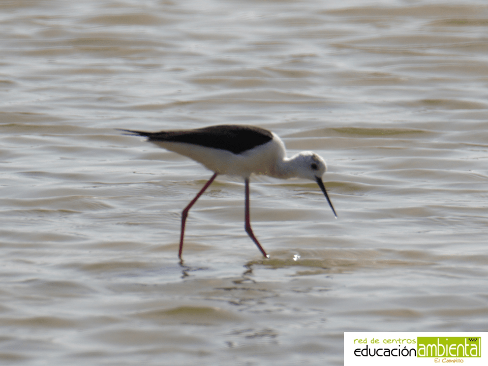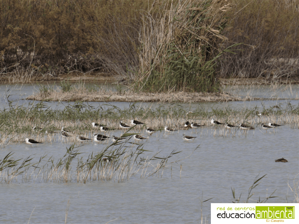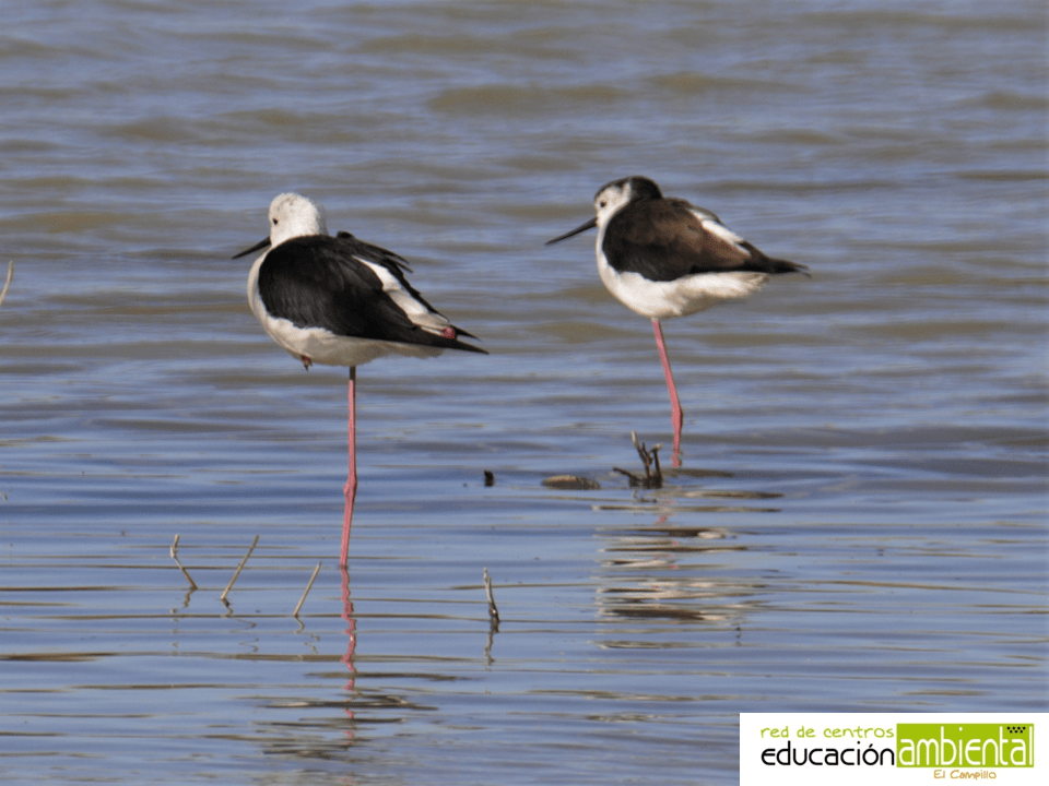 Seguramente la más grácil y elegante de las aves limícolas presentes en el Parque Regional del Sureste sea la cigüeñuela (Himantopus himantopus). Sus largas patas rojizas, su negro pico largo y fino, su cuerpo blanco, un píleo con un variable tamaño de color negro, sus alas oscuras (parduzcas en el caso de la hembra, negras con iridiscencias en el macho) y su característico caminar, la convierten en un ave inconfundible.