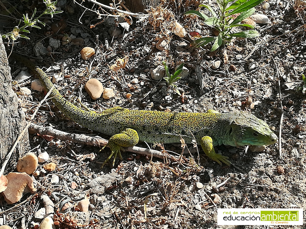 También podemos encontrar reptiles en las zonas soleadas y claros. Podremos apreciar lagartija cenicienta (Psammodromus hispanicus), lagarto ocelado (Timon Lepidus) y culebra bastarda (Malpolon monpessulanus) que se alimentan de multitud de especies de insectos: mariposas, escarabajos, saltamontes, mantis, escorpiones, insectos palo… también presentes en este ecosistema.