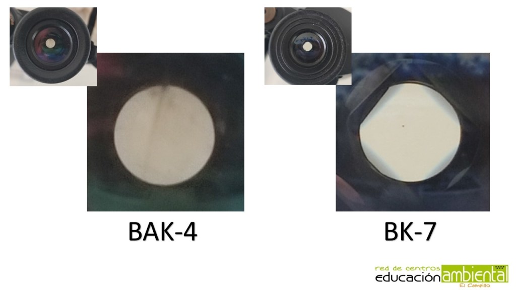 Además, los prismas pueden estar fabricados por distintos materiales. Por un lado, tenemos los BK-7, que están hechos de vidrio de boro-silicato, y por el otro, los BAK-4, fabricados con vidrio de bario. Los primeros son más económicos (pero con menos calidad) mientras que los segundos tienen mayor calidad (en cuanto a luminosidad, nitidez y contraste) pero son más caros. Además, las BK-7 producen un sombreado en el haz de luz que sale por las lentes, reduciendo la luminosidad.
