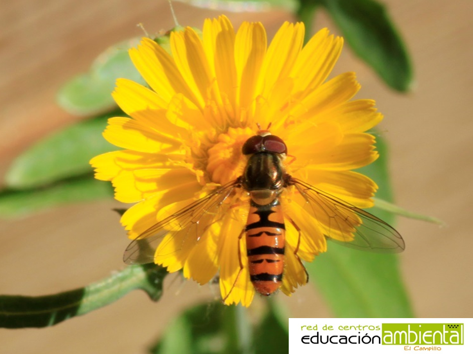 El ciclo de vida de los sírfidos es como el de cualquier insecto holometábolo, es decir, que realiza una metamorfosis completa pasando de larva a imago (adulto) a través del estado pupa. El hecho de que la larva tenga diferente ecología trófica que el adulto, hace a los sírfidos un doble aliado en el huerto. Por un lado, al igual que las larvas de otros insectos, algunas larvas de sírfidos son grandes depredadoras y se alimentan de uno de los grandes enemigos de la huerta: el pulgón. Por el otro, los adultos se alimentan de néctar y flores ayudando en la polinización de las flores. Así que ya sabes, si ves uno de estos animales sobrevolando tu huerto…¡estás de enhorabuena! Cuídalos y ellos te ayudarán a cuidar de tu cosecha. En nuestra huerta Calamón, hemos tomado nota y tenemos una zona específica para este tipo de animal en nuestro Hotel de Insectos. ¡Ven a visitarla y descubre este curioso artrópodo!