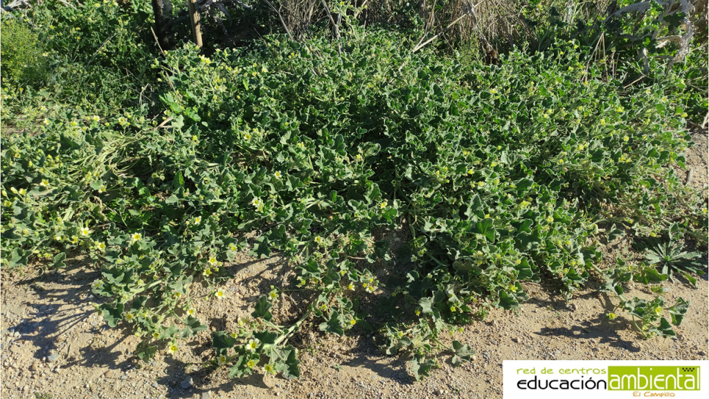 Cuando paseamos por la laguna de El Campillo, normalmente solemos asombrarnos y deleitarnos con los árboles que forman el bosque de ribera o con las espectaculares imágenes que generan la laguna con los cortados yesíferos al fondo. Sin embargo, es interesante mirar de vez en cuando al suelo y buscar algunas de las curiosas especies botánicas a las que sobrepasamos en altura. Una de estas plantas es el pepinillo del diablo.