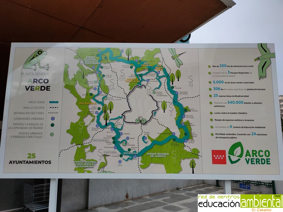 Arco verde pretende promover la conectividad, renaturalización y biodiversidad urbana en los entornos y áreas verdes periurbanos, permitiendo el acercamiento de la población de un modo sostenible, con dotaciones adecuadas en función de la previsión de afluencia a las diferentes zonas y sin necesidad de usar el vehículo privado, gracias a su interconexión con la red ya existente de transporte público. El Centro de Educación Ambiental El Campillo se encuentra dentro del recorrido por lo que, junto a otros 3 centros de la Red (CEA Caserío del Henares, CEA Bosque Sur y CEA Polvoranca) contribuiremos a la difusión del proyecto a través de iniciativas de educación ambiental.