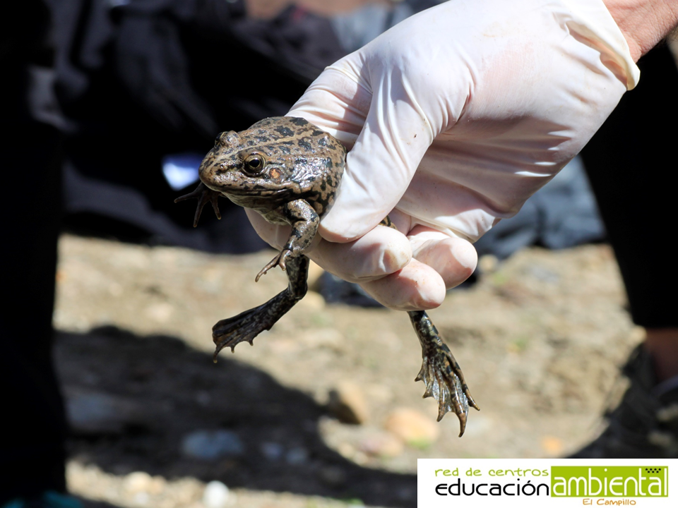 Como es habitual, la actividad comenzó a las 11 de la mañana y, tras una pequeña introducción en el punto de encuentro acerca del Parque Regional del Sureste y Arco Verde, anduvimos unos 25 minutos hasta el punto donde habíamos quedado con Carlos Caballero. Una vez allí, gracias a la información que él nos dio y al uso de láminas, descubrimos las 8 especies de anfibios que habitan nuestro área protegida: gallipato (Pleurodeles waltl) (único anfibio urodelo presente en el parque), sapo común (Bufo spinosus), sapo corredor (Epidalea calamita), sapo de espuelas (Pelobates cultripes), sapillo pintojo ibérico (Discoglossus galganoi), rana común (Pelophylax perezi), sapillo moteado común (Pelodytes punctatus) y sapo partero común (Alytes obstetricans). También conocimos las principales amenazas que se ciernen sobre estas especies y a uno de sus grandes enemigos: el cangrejo americano. Además, pudimos entender la importancia ecológica de las charcas estacionales en la vida de los anfibios.