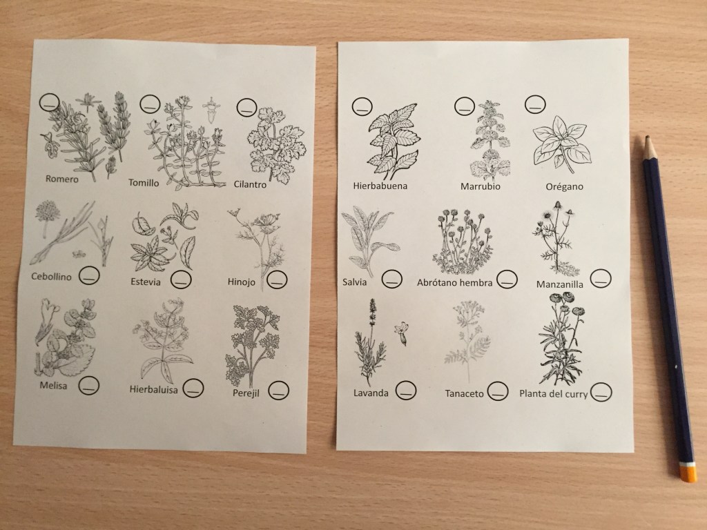 Para no perderse nada, recomendamos que antes de corregir el auto-guiado con los números, os animéis a disfrutar de este segundo juego de identificación a través del olfato. En este caso, la actividad consiste en oler detenidamente las bolsitas de aromáticas y tratar de adivinar de qué aromática se trata, eligiendo entre las de las tarjetas, y posicionando cada tarjeta debajo de su bolsita correspondiente.