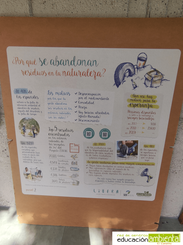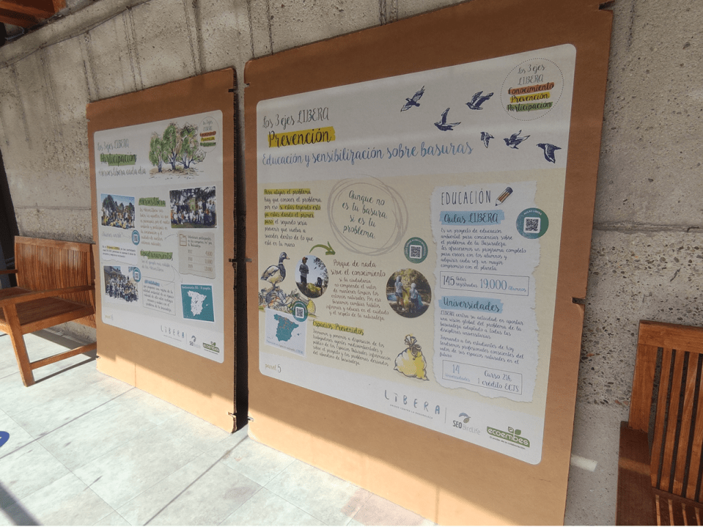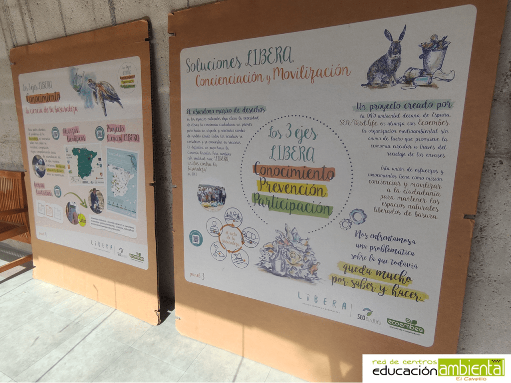A continuación nos presenta el «Proyecto LIBERA», abanderado por SEO Birdlife y Ecoembes, como método de lucha contra la «basuraleza». Los últimos 3 paneles son para conocer los pilares de este proyecto: conocimiento, prevención y participación.