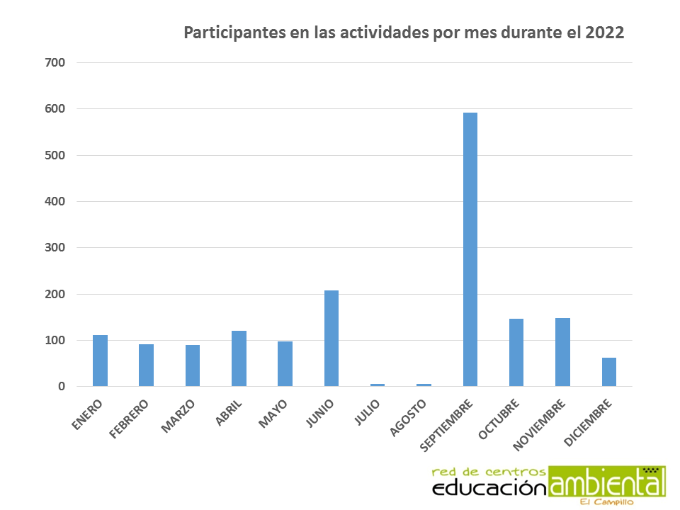 Así que este año, al aumentar los aforos en nuestras actividades, podemos dar las gracias a las 1678 personas que han participado en nuestras actividades de fines de semana y festivo (más del doble del año anterior). De todas las actividades, este año han sido las colaboraciones con otros centros las que más éxito han tenido con un total de 824 participantes (49%), seguidas de los 452 en los talleres (25%) y los 285 en las sendas (17%). La participación durante los meses del primer semestre se mantuvo constante excepto en junio, mes en el que organizamos nuestra feria. Verano siempre son meses tranquilos salvo septiembre que es cuando participamos en las ferias de Caserío de Henares y el CRA Chico Mendes. En otoño subieron los participantes respecto a la primavera porque aumentamos los aforos y en diciembre volvieron a bajar porque los dos últimos fines de semana no hubo actividades al coincidir con los festivos navideños. Gracias a todas y todos por venir y también gracias por dedicar unos minutos a rellenar las evaluaciones que pasamos al finalizar las actividades ya que, sumadas a los comentarios que nos hacéis de viva voz, nos sirven para mejorar un poquito más cada día y así poder adaptar nuestras actividades a vuestros gustos y necesidades.