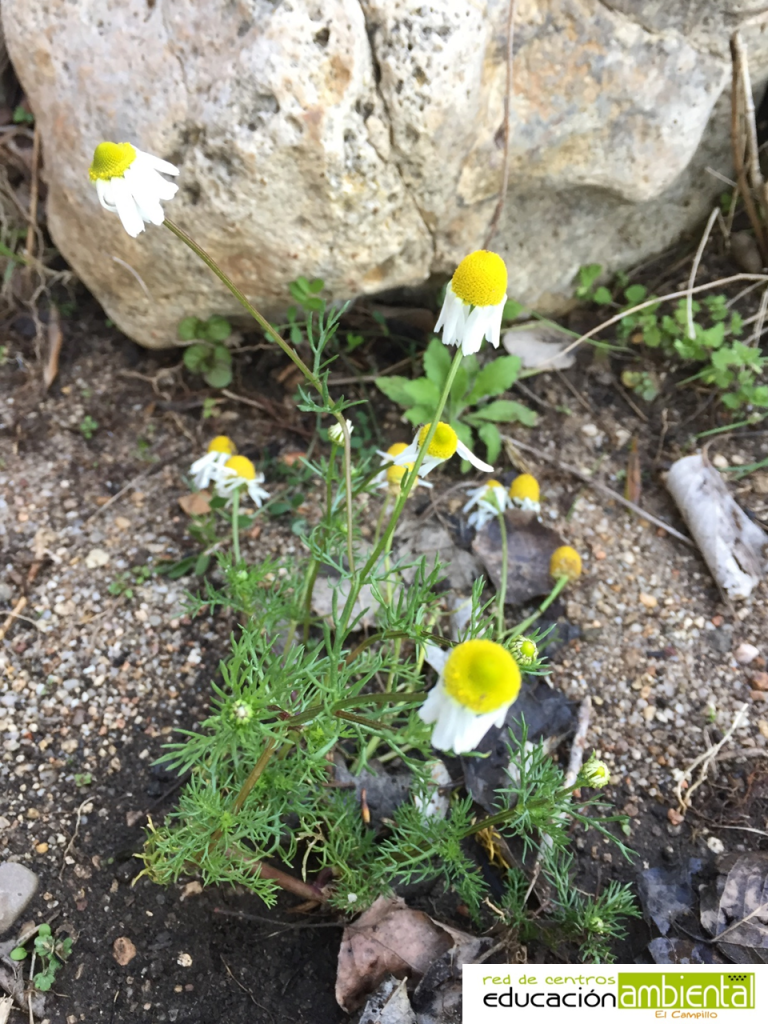 Manzanilla (Matricaria recutita): El nombre de Matricaria proviene del latín matrix, la matriz, ya que se considera muy beneficiosa para las dolencias de este órgano. Por otra parte, el nombre de manzanilla se le atribuye, bien a que el capítulo floral tiene forma de manzana pequeña, bien a que su olor puede recordar al de la manzana. De cualquier manera, dicha planta tiene múltiples propiedades. A parte de sus cualidades ya ampliamente conocidas como especie digestiva y carminativa, también es usada para el tratamiento de la ansiedad, el insomnio y las depresiones leves.