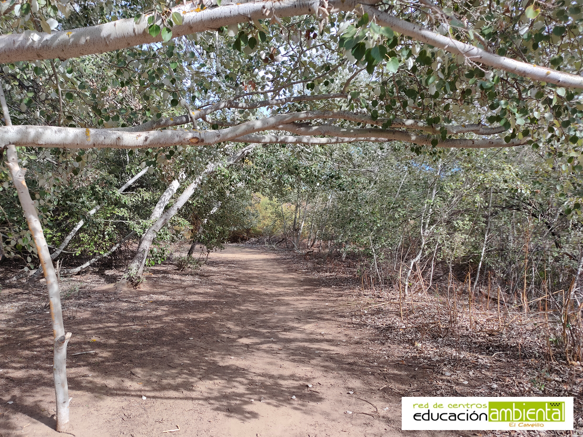 Con el río a un lado y el humedal al otro, comenzamos el paseo rodeados de la vegetación del soto. La conforman en su mayoría álamos blancos (Populus alba) y álamos negros (Populus nigra) que nos regalan formas caprichosas y portes imponentes debido a su madurez, pero también encontraremos sauces (Salix alba), olmos (Ulmus minor), taráis (Tamarix gallica) y ailantos (Ailanthus altissima), esta última especie introducida e invasora.