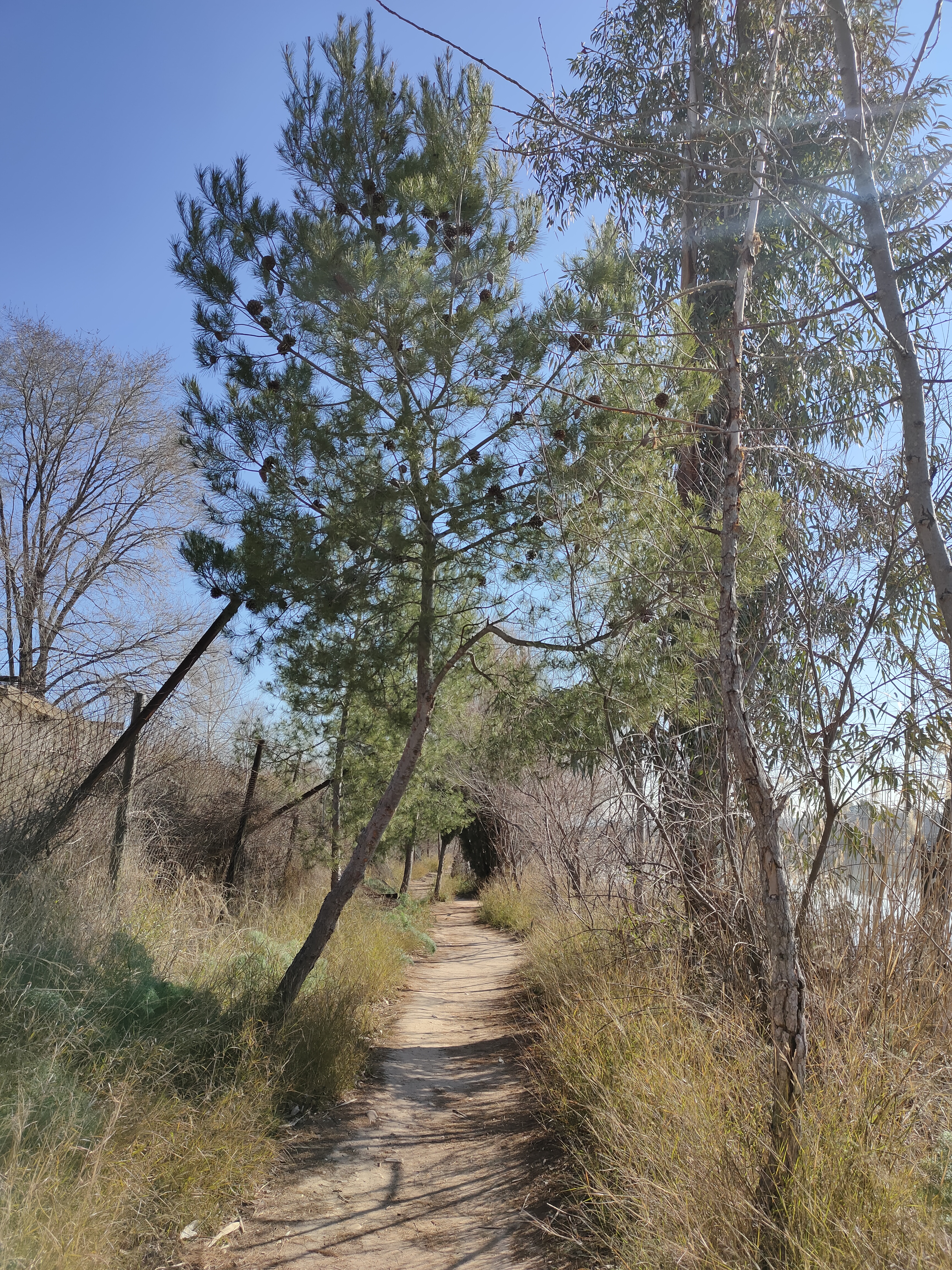 Continuamos por este camino hasta toparnos con el río Jarama, donde entonces terminamos de dar el giro a la derecha y avanzamos a la sombra del bosque de ribera.