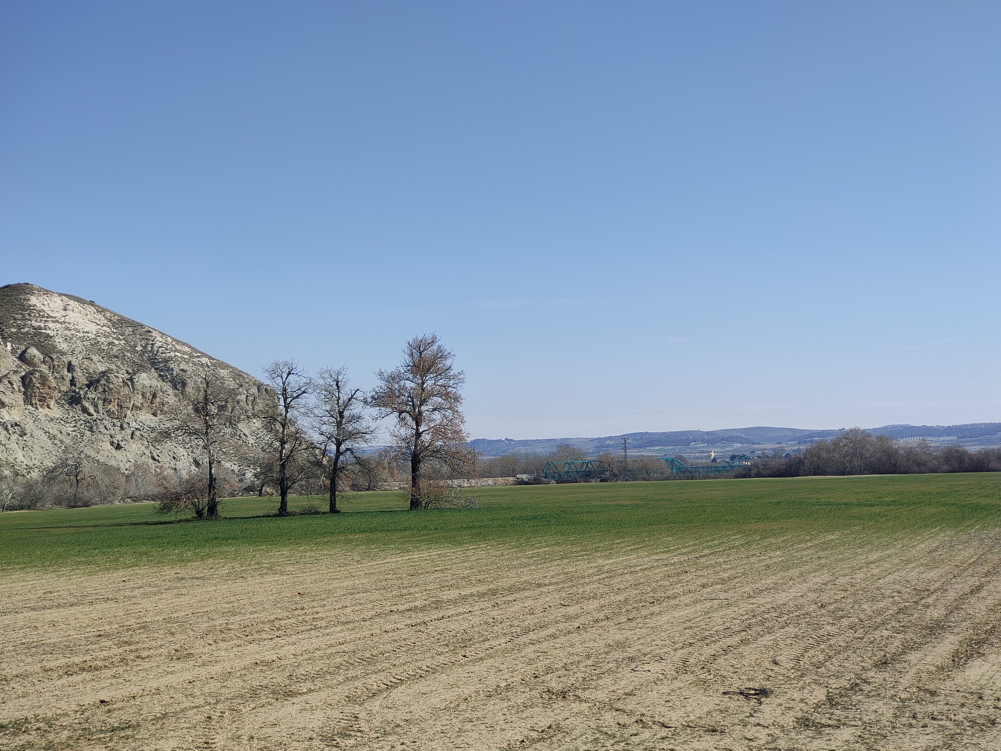 Si miramos a la derecha de los cortados, nos encontramos con un extenso campo de cultivo, perteneciente a la finca de «El Piul» dedicada a la agricultura y ganadería.