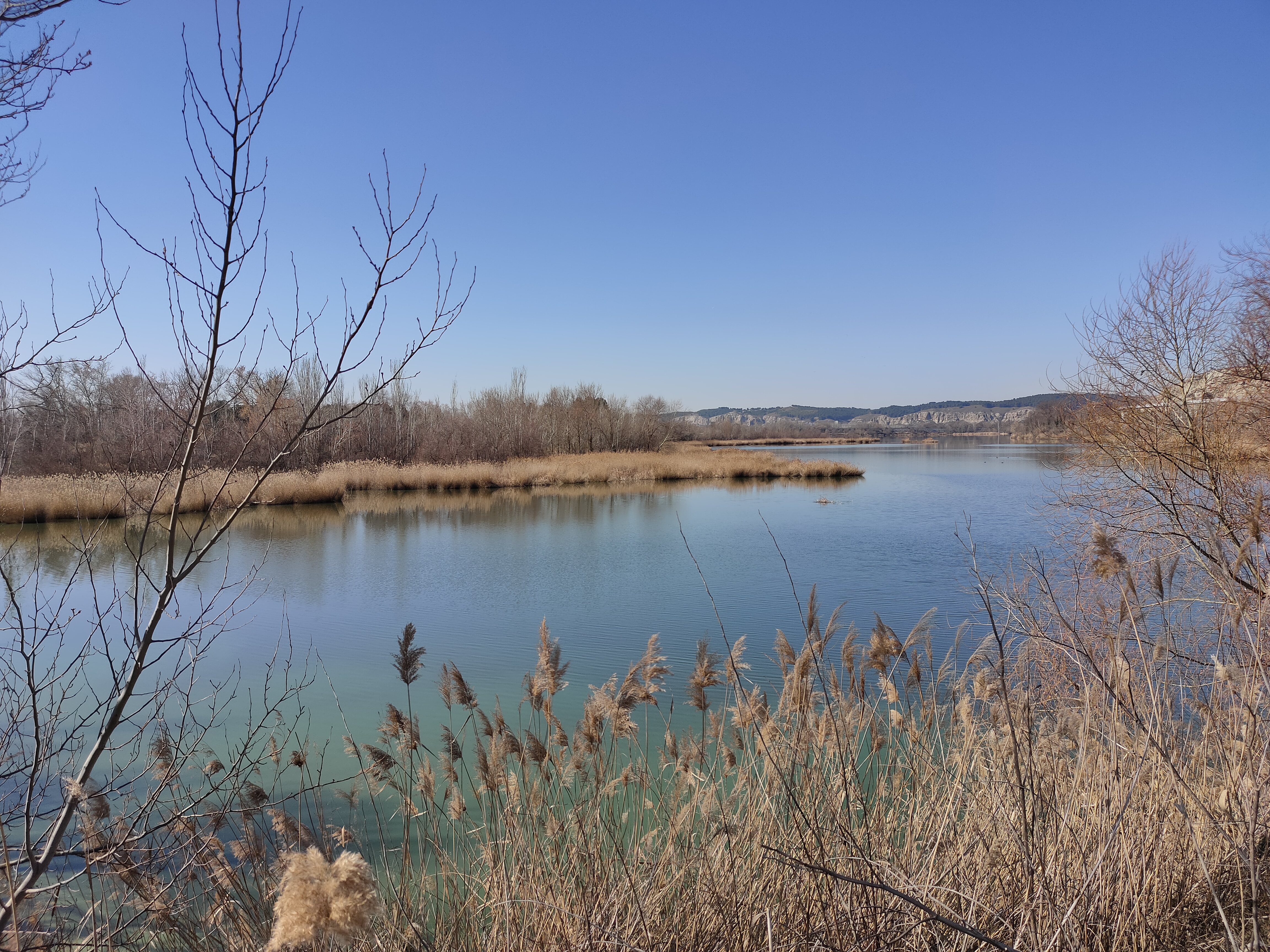 Comenzamos la curva de la ruta circular y nos encontramos con otra bonita panorámica de la laguna, en este rincón no está permitida la pesca, por eso gran parte de la fauna acuática, como las garzas, calamones o somormujos eligen esta zona como refugio.