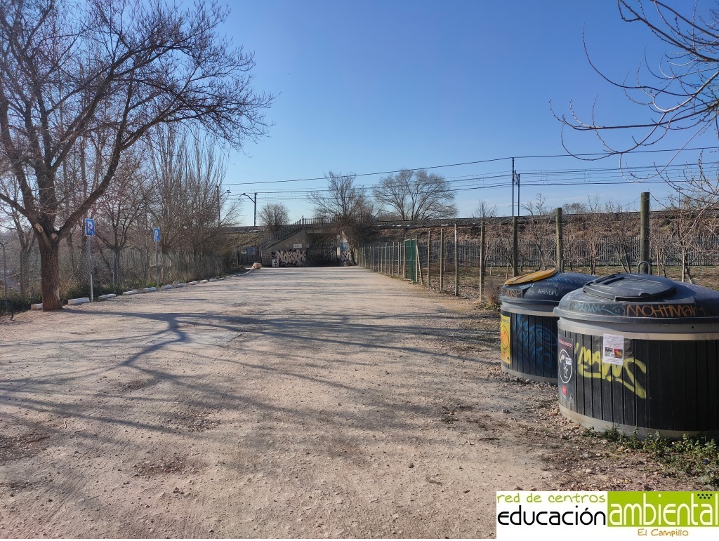 Iniciamos el recorrido por el camino de tierra que está justo a la derecha de las vías del Tren de Arganda, atravesando una cancela metálica. Puedes encontrar dicha cancela, en unas ocasiones abierta, y en otras cerrada para no permitir el paso de vehículos motorizados. Sin embargo, el acceso peatonal o de bicicletas sí que está permitido.