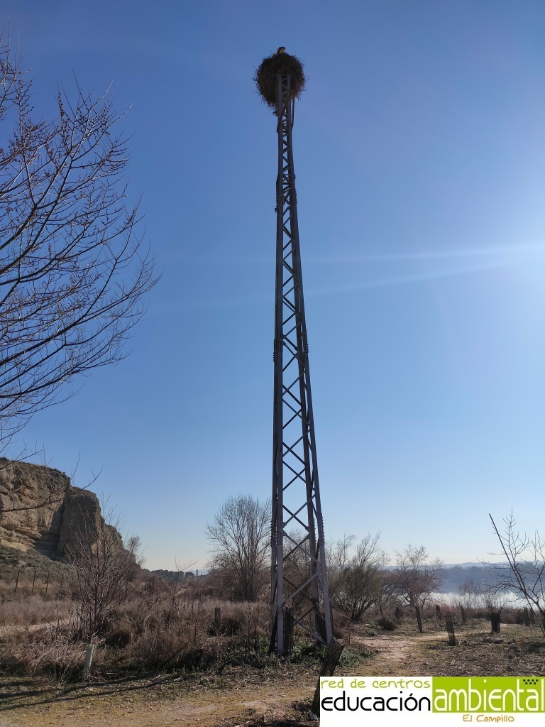 Si nos fijamos alrededor, llama la atención un poste de electricidad que a primera vista no queda muy favorecedor en el paisaje, sin embargo, al levantar la mirada nos llevaremos una grata sorpresa… ¡un enorme nido en el extremo! ¿De quién puede ser esa estructura? Efectivamente, principalmente es un nido de cigüeña pero si observas bien su parte inferior, también puede haber inquilinos de menor tamaño como gorriones.