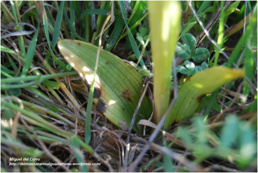 La mayoría de las orquídeas Ophrys dependen de un hongo simbionte, debido a esto desarrollan sólo un par de pequeñas hojas alternas. Tampoco pueden ser trasplantadas debido a esta simbiosis. Las pequeñas hojas basales forman una roseta pegadas a ras de suelo.