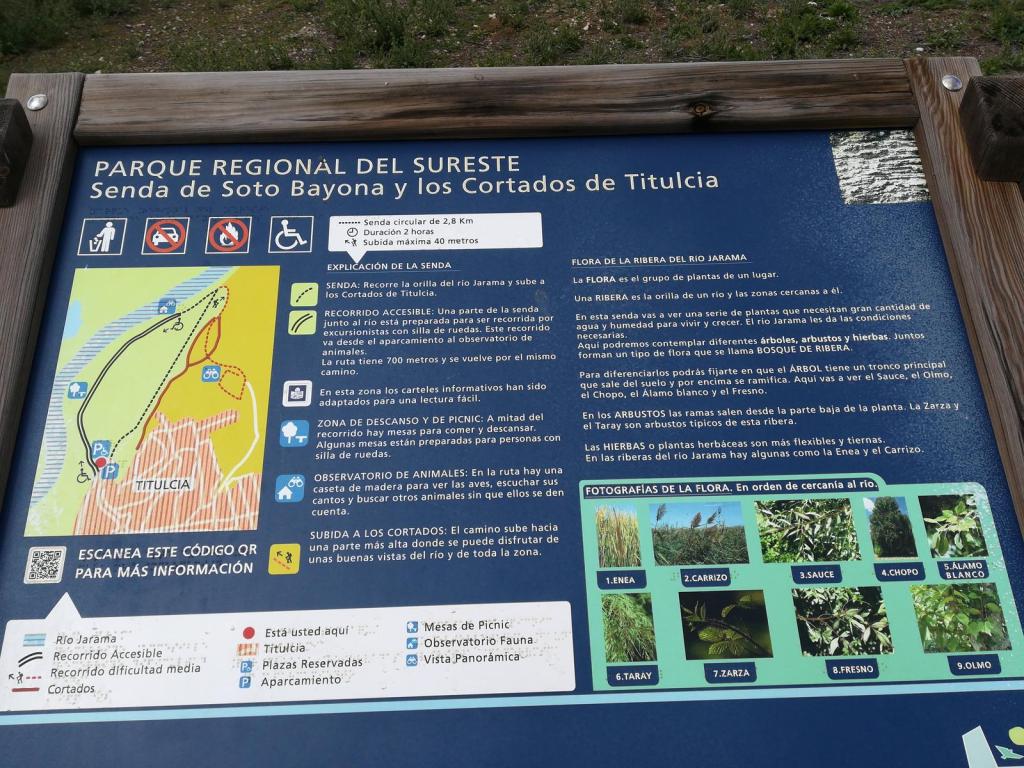 Al sureste de la Comunidad de Madrid, en el municipio de Titulcia se encuentra una senda que discurre a lo largo de la ribera del Jarama conocida como la Senda del Soto de Bayona. Se trata de una ruta circular de unos 4 km con 21 metros de desnivel y de dificultad entre fácil y moderada.