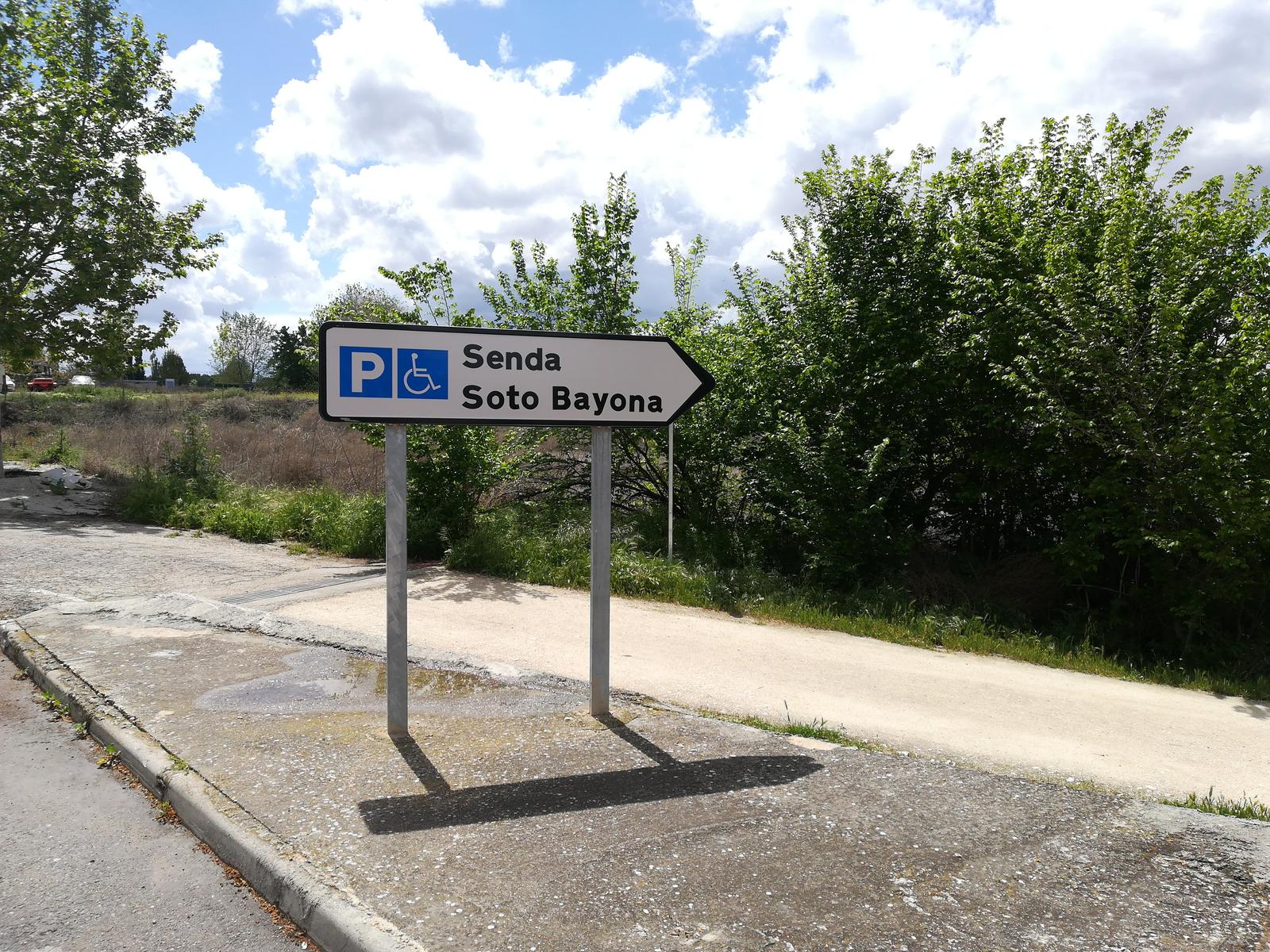 Un poco más adelante, en el camino, podremos consultar un panel explicativo del bosque de ribera que nos explicara las principales especies vegetales que nos podemos encontrar a lo largo del bosque de galería así como las bandas de vegetación en función de su proximidad a la orilla del río. Descubriremos así que el bosque de ribera del Soto de Bayona lo componen, principalmente y por orden de cercanía a la orilla: espadañal, carrizal, saucedal, chopera, taraje, fresnedal y olmedal.