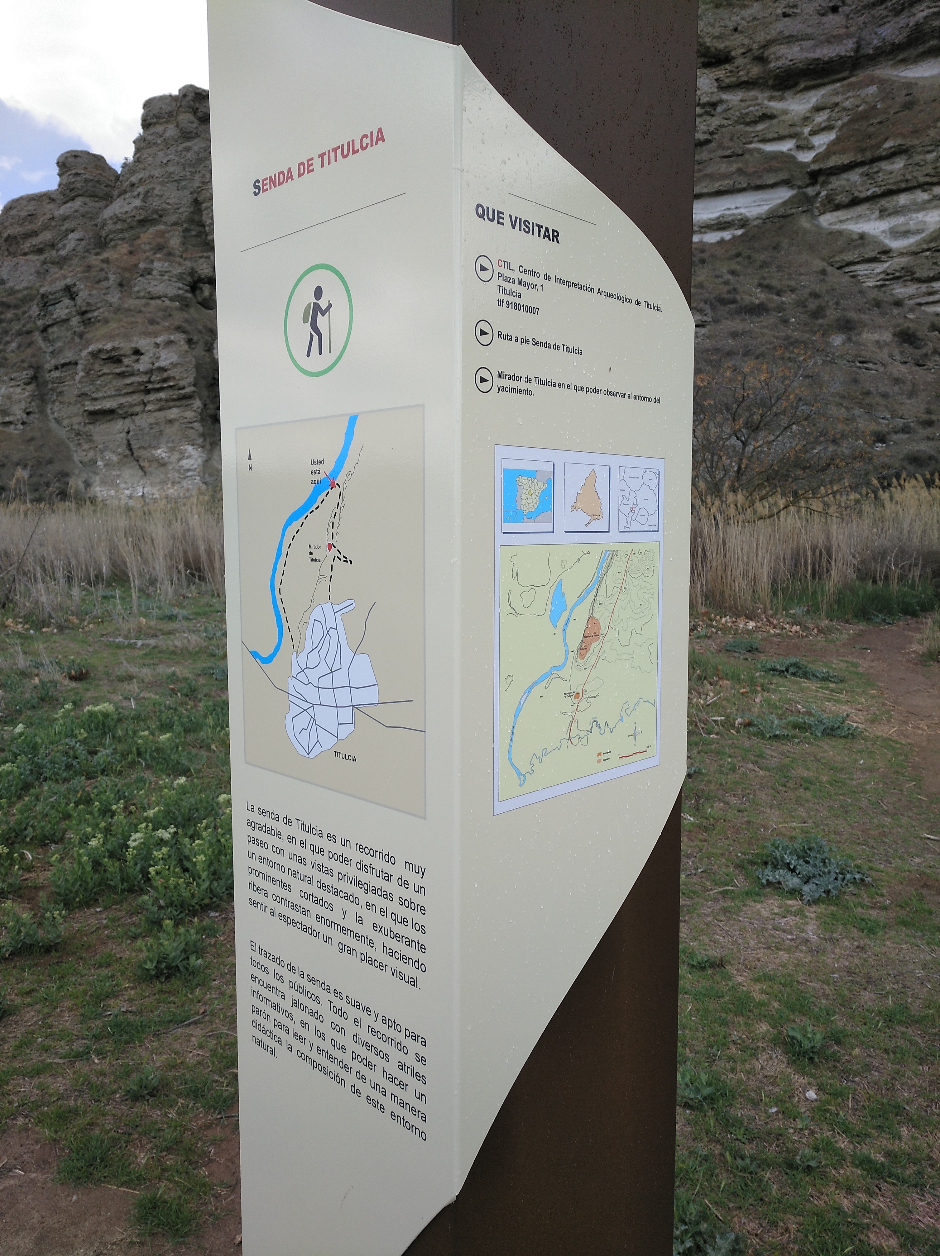 Seguimos caminando por la senda y nos encontraremos con una bifurcación, marcada por un hito explicativo, que si se toma por la derecha, se sube por los cortados hasta llegar al antiguo Oppidum (este sería el camino indicado en la cartelería del comienzo del camino). En nuestro caso tomaremos el camino de la izquierda.