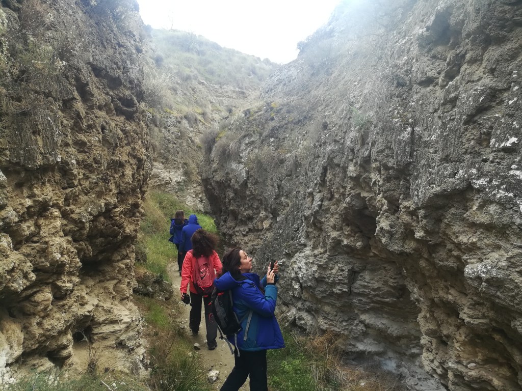 Unos metros más adelante, tendremos la oportunidad de conocer muchas de las especies de plantas gipsófilas que pueblan todo el Parque Regional del Sureste como son el sisallo, la barrilla, el falso tomillo, la jabuna y/o la ontina. Además podremos apreciar con claridad los distintos materiales de que están compuestos los cortados: yeso, caliza y margas. Son rocas detríticas evaporíticas formadas en el mioceno por precipitación de los solutos presentes en un gran lago endorreico que ocupaba el centro peninsular. La morfología tan abrupta de dichos cortados, en forma de cantil se deben a su posterior erosión, durante el cuaternario, por el paso del río Jarama.