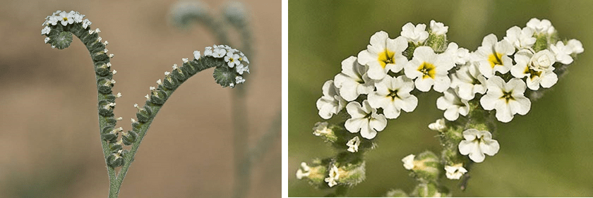 Detalle de inflorescencia escorpoidea y flores. Fuente: http://www.acorral.es