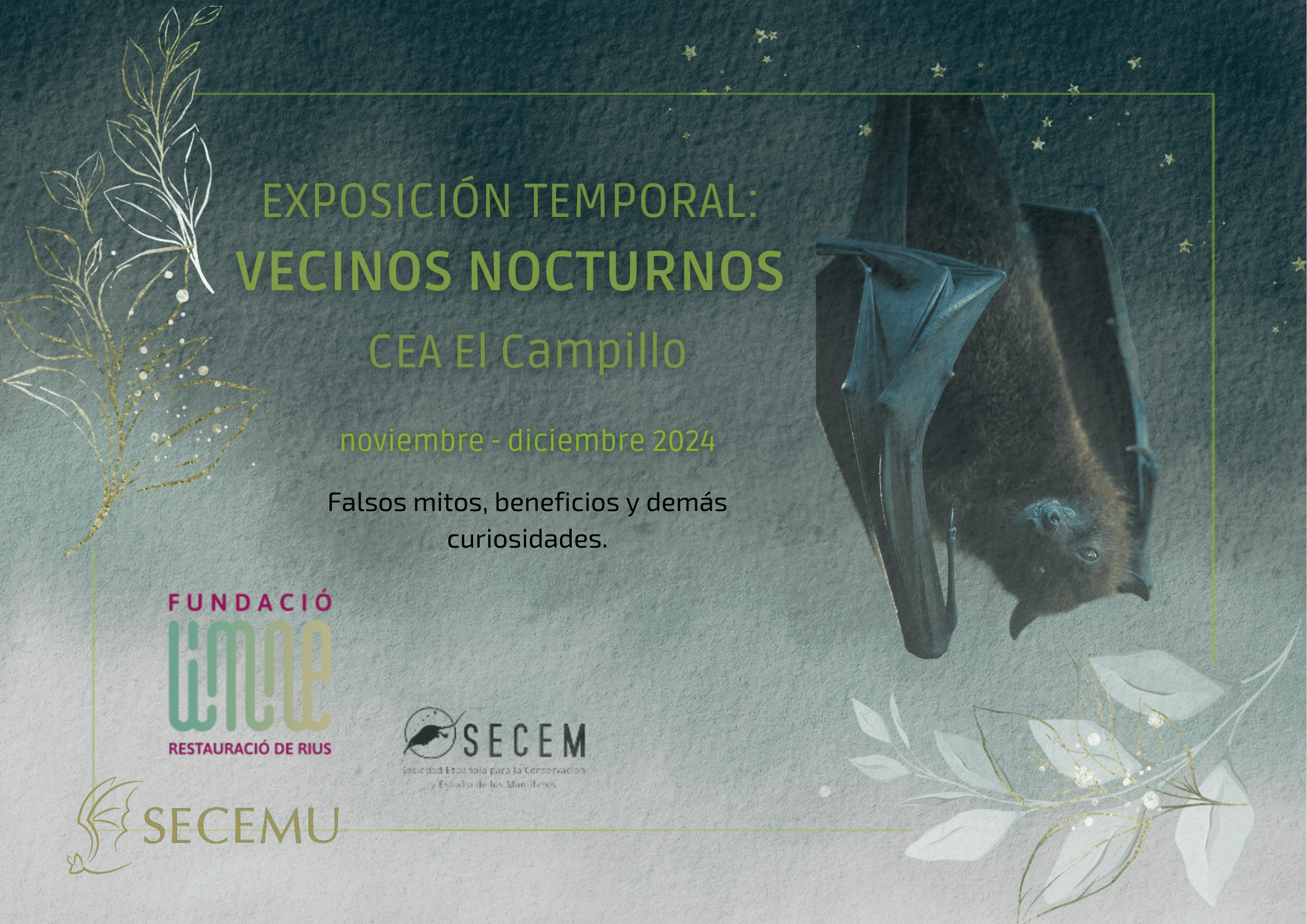 La mala fama de estos entrañables animales, les ha llevado a ser perseguidos y eliminados en diferentes épocas y lugares del mundo. Pero poco se habla de los enormes beneficios tanto ecológicos como económicos que supone tener a estos mamíferos voladores formando parte de nuestros ecosistemas. Por ejemplo, estos peludos alados son grandes devoradores de insectos, por lo que colaboran con el control de plagas, que tantos estragos han causado a lo largo de la historia. Por ello, asociaciones como el SECEM, SECEMU y Fundación LIMNE llevan a cabo diversas labores de concienciación y divulgación que esclarecen y limpian el nombre de estos seres. La exposición de Vecinos Nocturnos es una iniciativa de estas entidades que, además de desmentir tan dañinos mitos, nos muestran curiosidades acerca de la morfología y etología de estas extraordinarias especies, así como la situación de amenaza en la que se encuentran sus poblaciones en la actualidad.