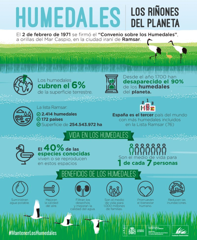 A raíz de este acontecimiento, cada año en este día, se celebra el Día Mundial de los Humedales. Este año, 2025, el lema elegido es, “Proteger los humedales para nuestro futuro común” y centra su atención en la necesidad de trabajar colectivamente, con el objetivo de preservar los humedales.