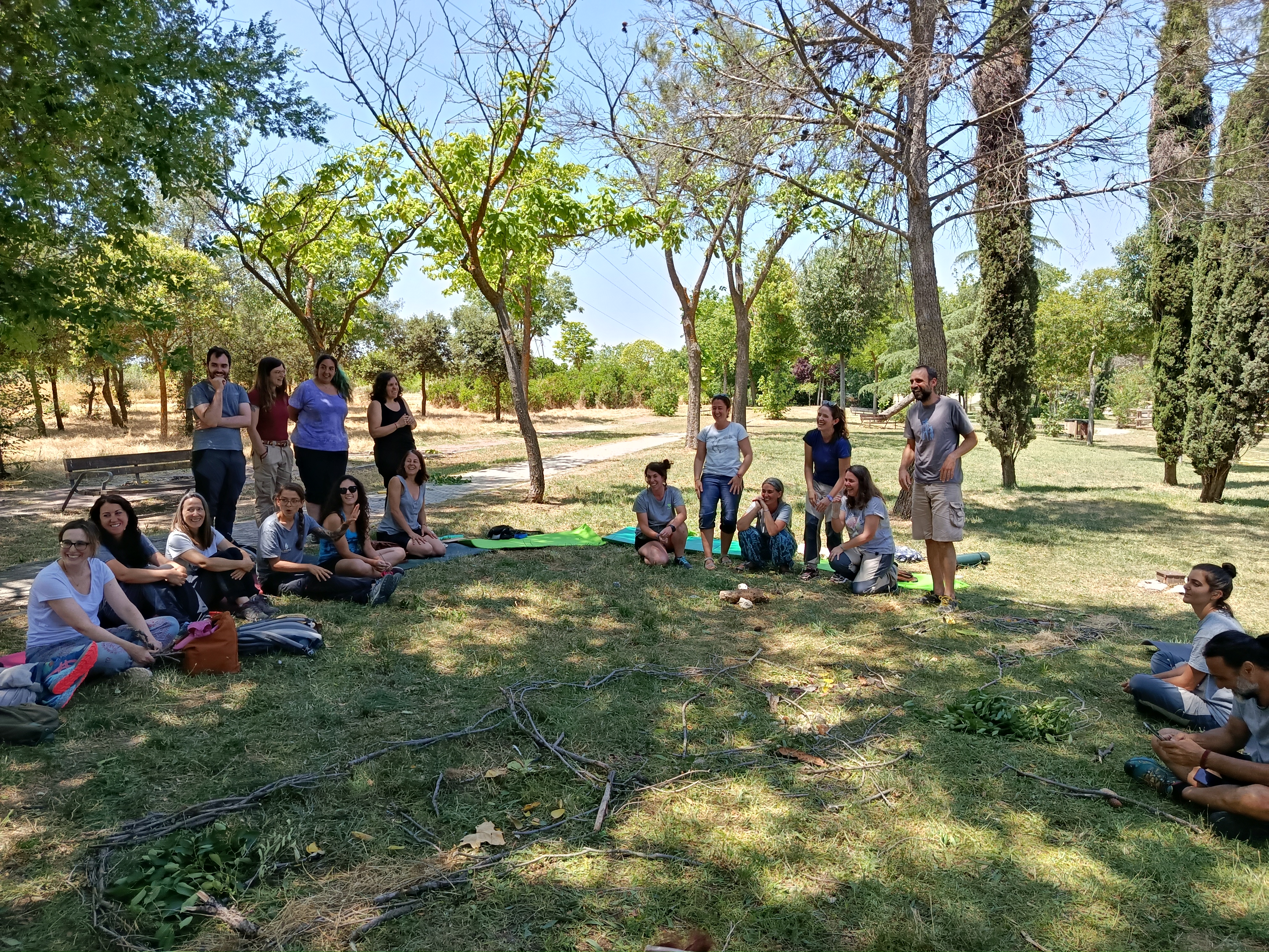 Durante la última semana del mes de junio, coincidiendo con el fin del curso escolar y el inicio de la época estival, los equipos de los centros de Educación Ambiental de la Comunidad de Madrid tuvimos la ocasión de realizar el curso «Educación ambiental para reconectar con la naturaleza«, impartido por Paqui Godino, de la Traviesa Ediciones. El curso se llevó a cabo entre el 24 y el 27 de junio, con dos sesiones en el CEA Polvoranca y otras dos sesiones en el CEA Arboreto Luis Ceballos.