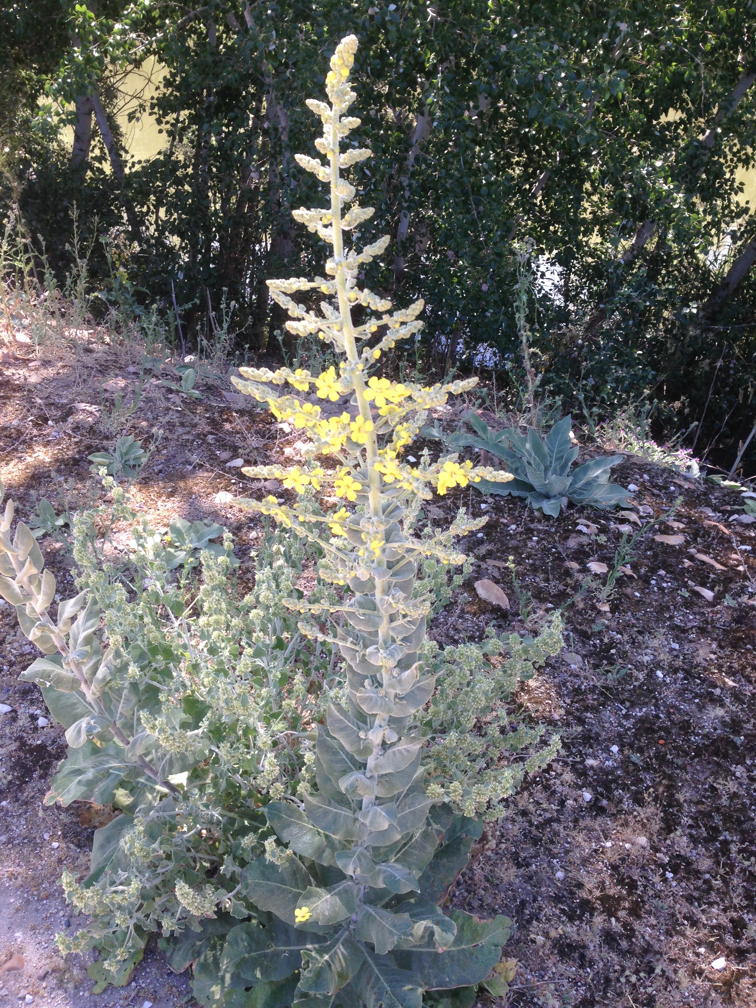 Su tallo puede alcanzar hasta 1 metro de altura y tiene un tono rojizo, hojas divididas irregularmente dentadas, con el envés blanquecino por estar recubiertas de vello y florece durante el verano en capítulos alargados a veces algo colgantes con florecillas amarillentas.